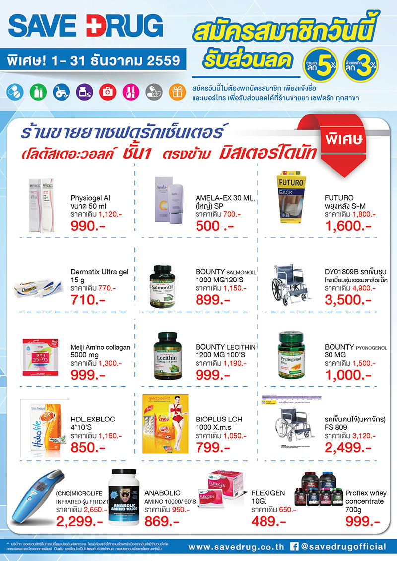 ที่เซฟดรัก สาขาพิษณุโลก ได้ ตั้งแตวันนี้จนถึง 30 พฤศจิกายน 59